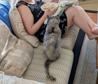 “In general, she is an absolute sweetheart, and she often follows us around the flat when we're pottering about. She likes being up high, so we've carefully placed stairs for her to enable some safe climbing. She seems very happy, and we are too.”