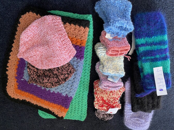 While she's an enthusiastic knitter and crocheter, she admits arthritis is a challenge to her work, and has to make herself take breaks to keep her pain levels down.