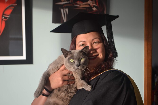“She sleeps with me all night, head on the pillow. I spend more on her food than I do on my own. I forgot to mention how loud and chatty she is, and you can hear her snoring a mile away.”