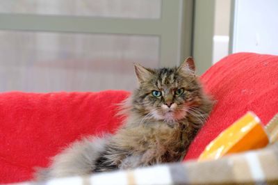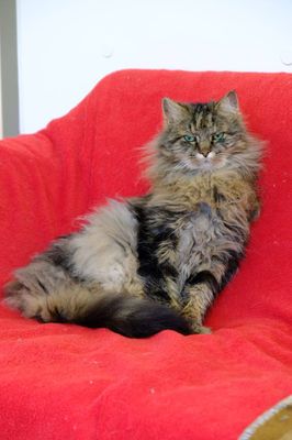 His age is the best guess based on his general health. Stripes is hyperthyroid, and as a former stray, is very shy of strangers. We know very little about him, but he is likely to do best in a quiet adult-only home with no other pets.
