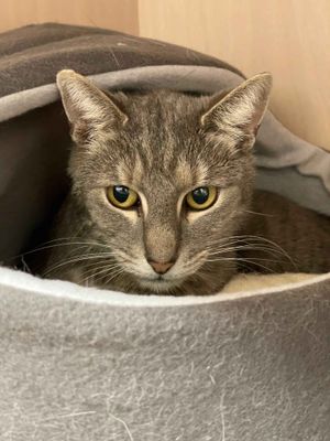 Corby is a friendly, laid-back dude who loves a long nap and being with his human. He has predominantly lived as an indoor cat, so he tends to lounge about, which would make him a great companion for someone who is home a lot.